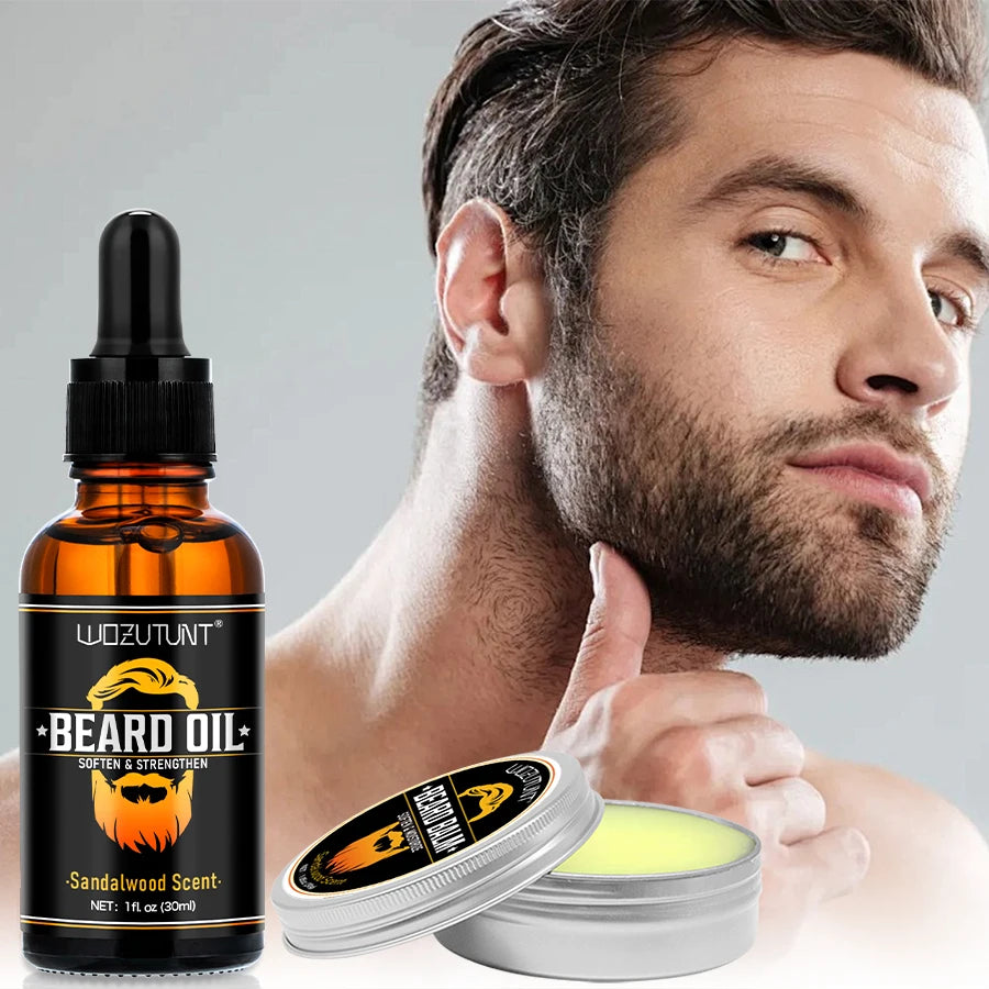 100% Natural Sandalwood Scent 30ml Beard Oil and 30g Balm Soften Strengthen Moisturize Men Beard Grooming Care Product