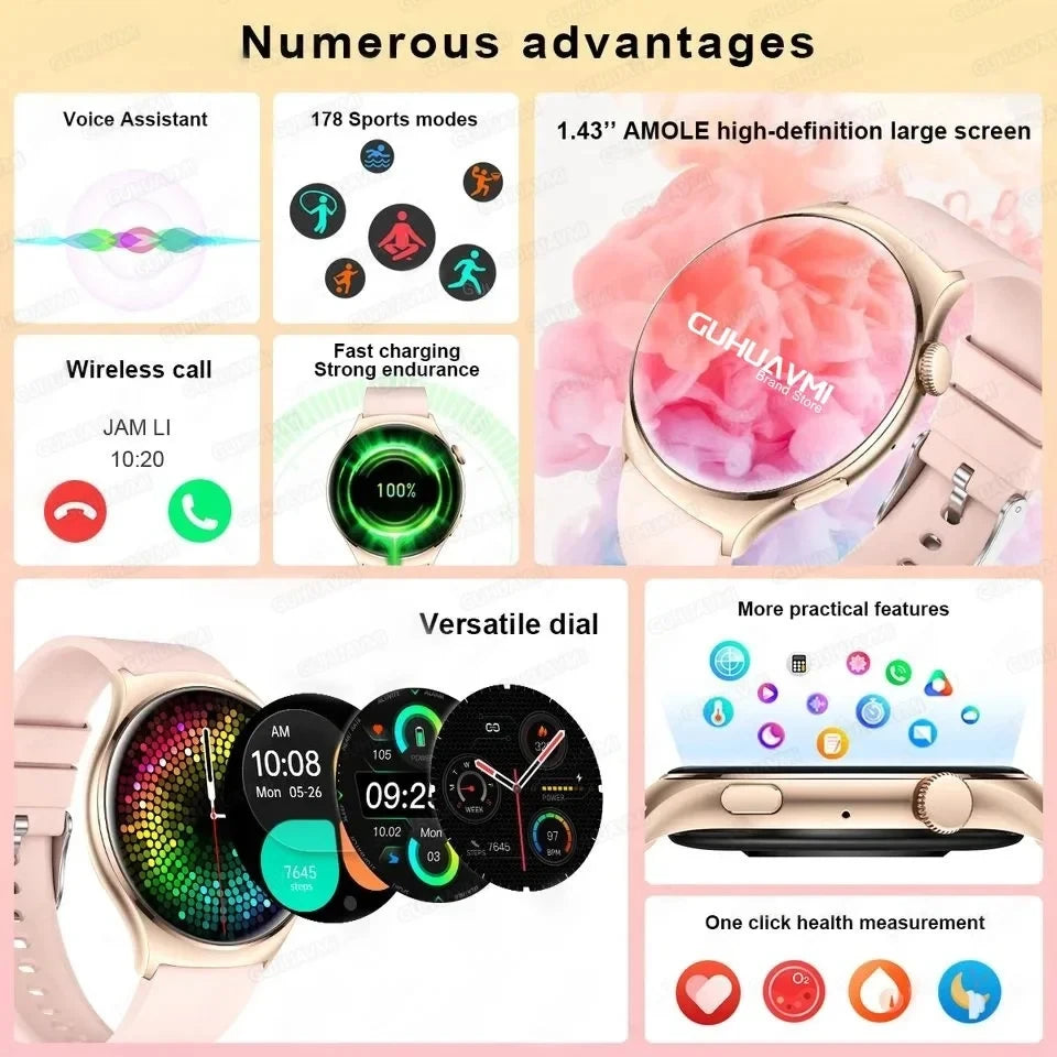 2024 GPS Smart Watch Women 1.43 Inch AMOLED 466*466 HD Screen Sport Heart Rate NFC Custom Dial Bluetooth Call Smartwatch Ladies