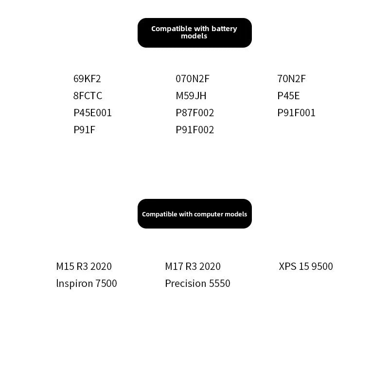 69KF2 Laptop Battery for DELL XPS 15 9500 9510 9520 9530 Precision 5550 5560 G15 5510 5511 5520 5515 5521 G7 15 7500 P91F P87F