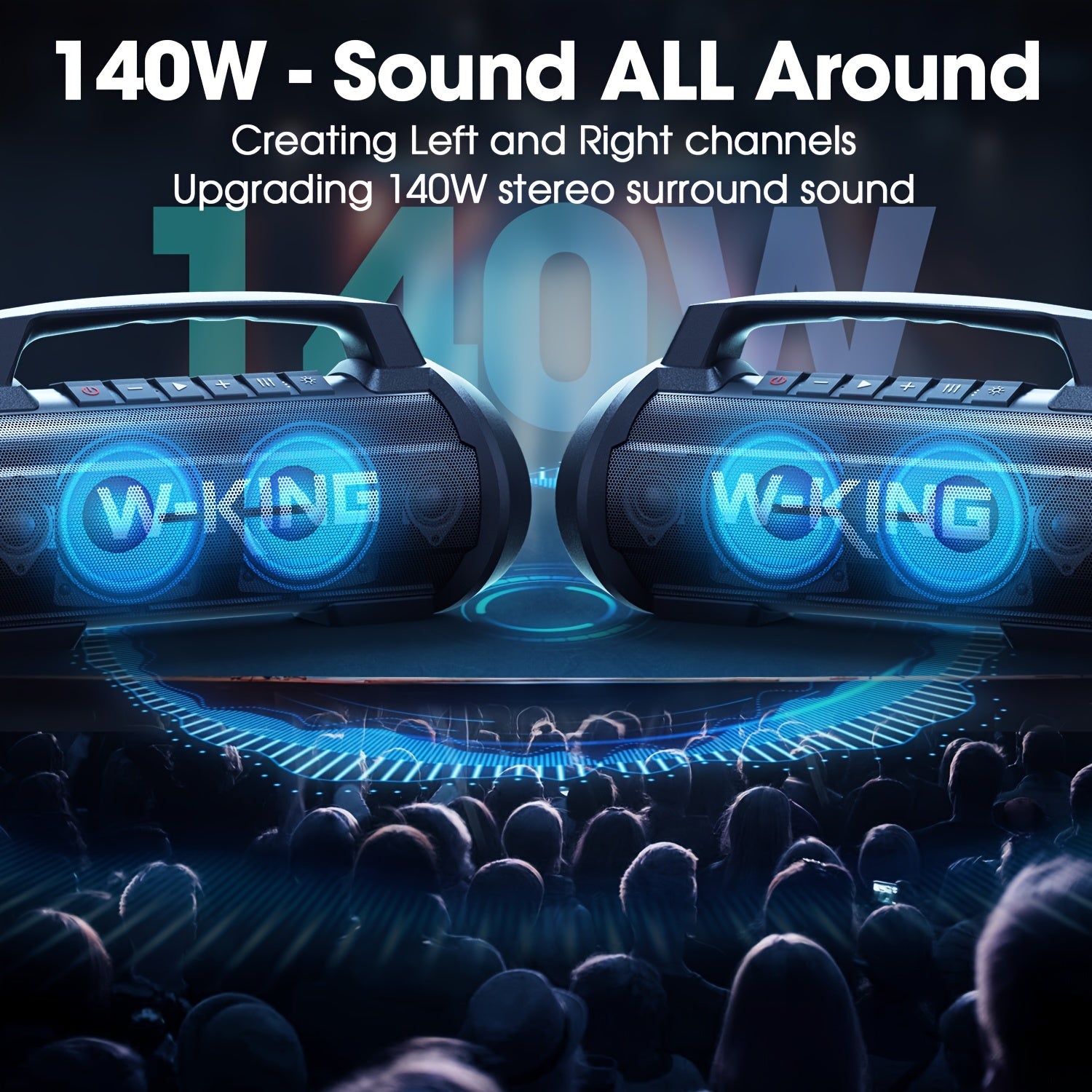 70W W-KING Thunderbolt - Portable Bluetooth Speakers with Waterproof, Bass Boost, DSP, Stereo Pairing, Powerbank, MIC and Long-Lasting Battery Life for Outdoor Party and Travel