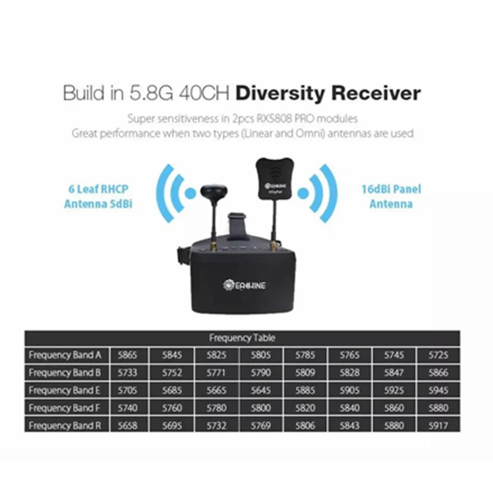 Eachine EV800D 5.8G 40CH Diversity FPV Goggles 5 Inch 800*480 Video with Super HD DVR Resolution Built-in Battery