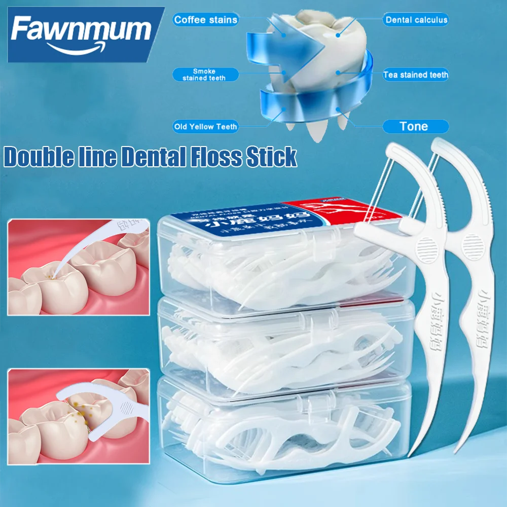 Fawnmum 50/100pcs Double Line Dental Floss Toothpicks Fresh Breath Dental Flosser Disposable Floss Stick For Oral Care