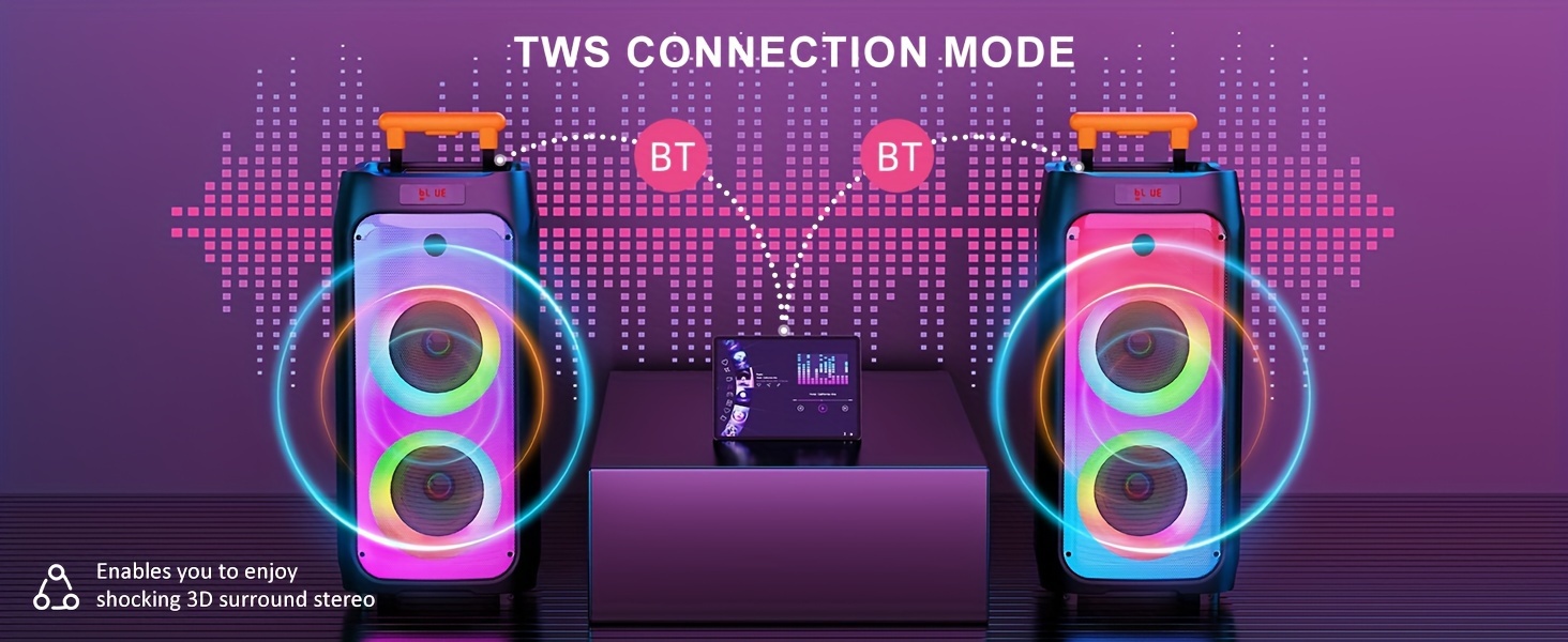 Experience an immersive 360° surround sound with the TWS stereo surround PA system.