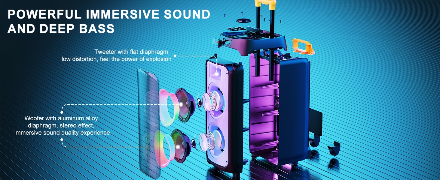 The JYX BT speaker utilizes advanced DSP full digital electronic crossover technology to effortlessly deliver a dynamic stereo sound experience. Its deep and powerful bass is distortion-free, the mid-range vocals are crystal clear, and the overall sound is well-balanced and vibrant.