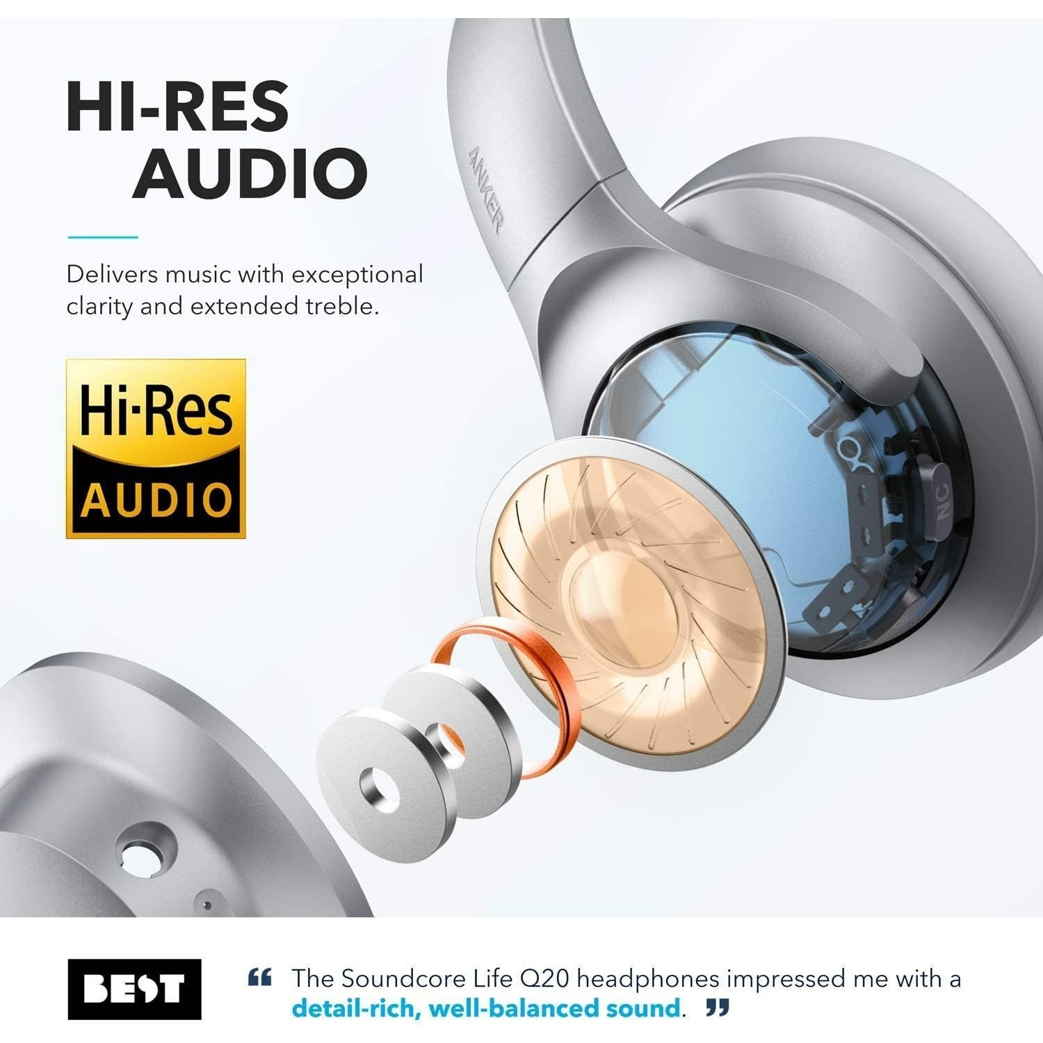 Refurbished- Soundcore by Anker Life Q20 Hybrid Active Noise Cancelling Headphones, Wireless Over-Ear Bluetooth Headphones with 40H Playtime, Hi-Res Audio, Deep Bass, Memory Foam Ear Cups and Headband