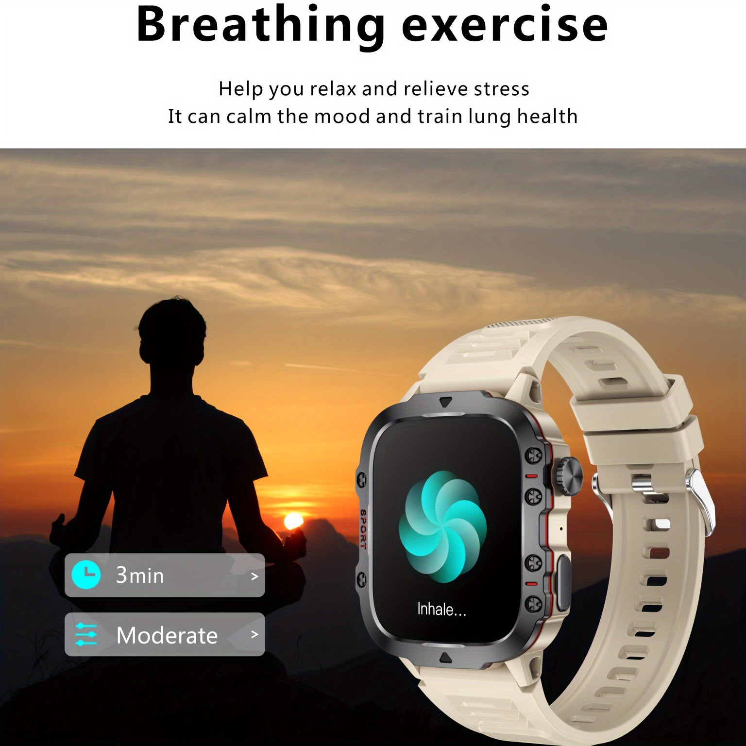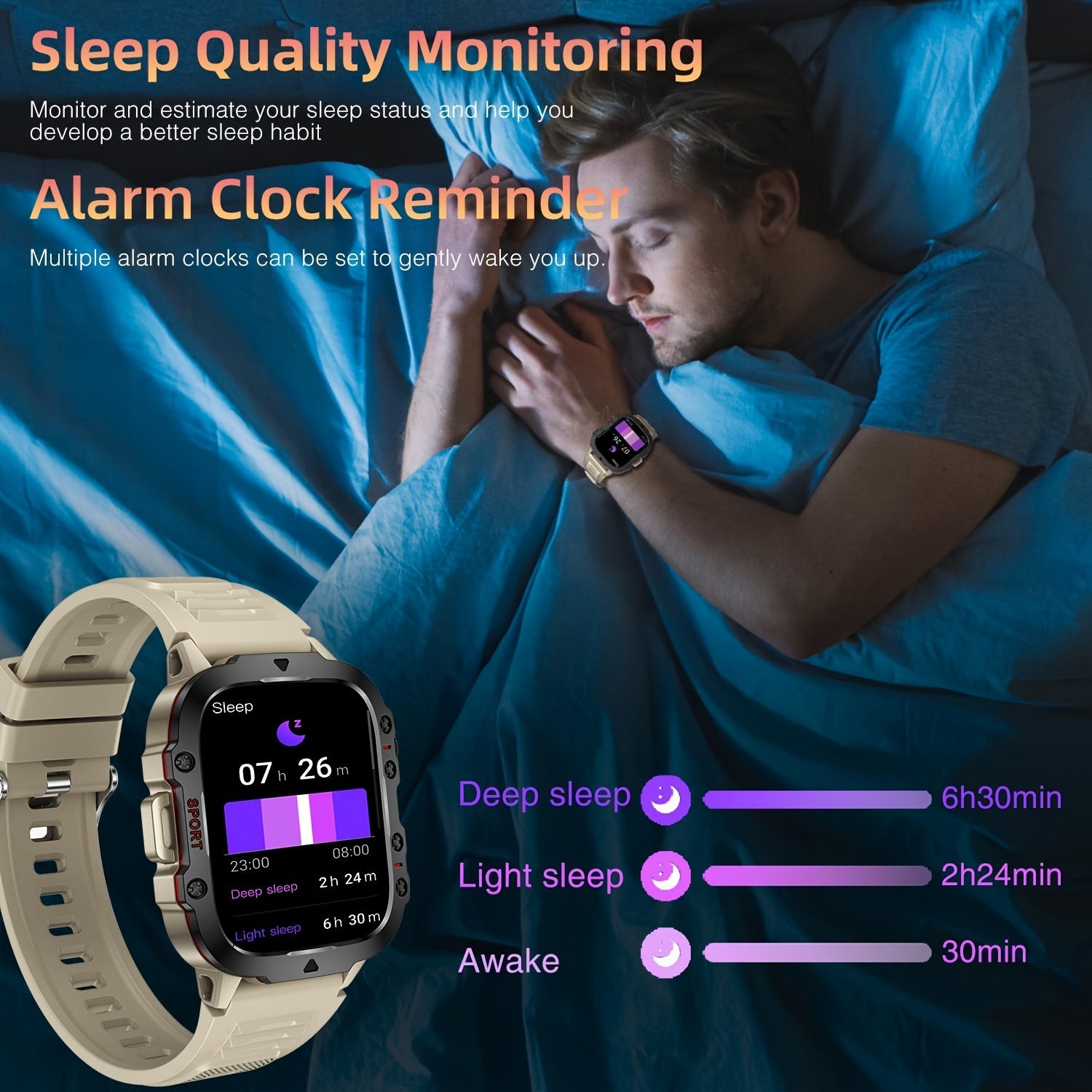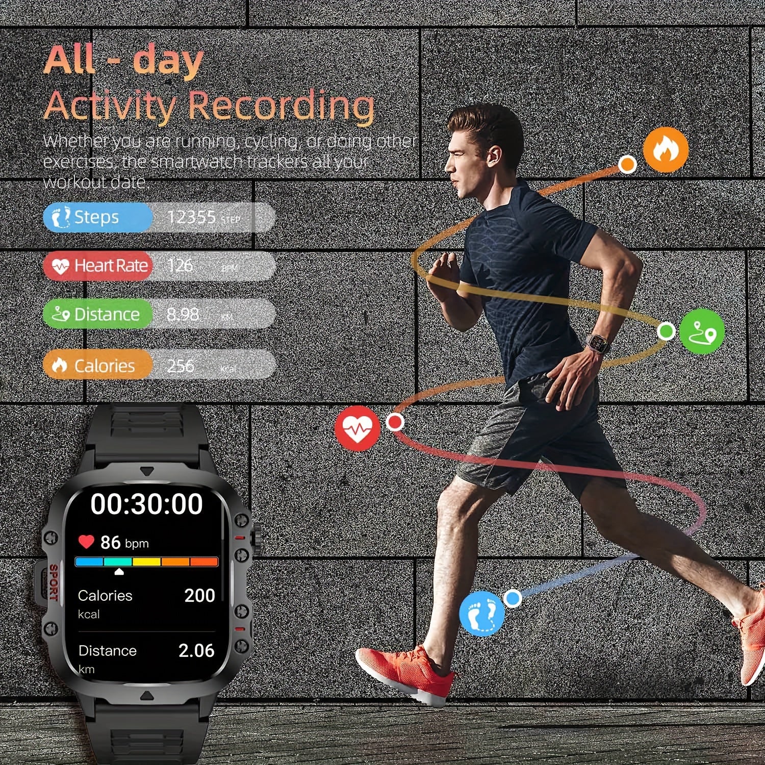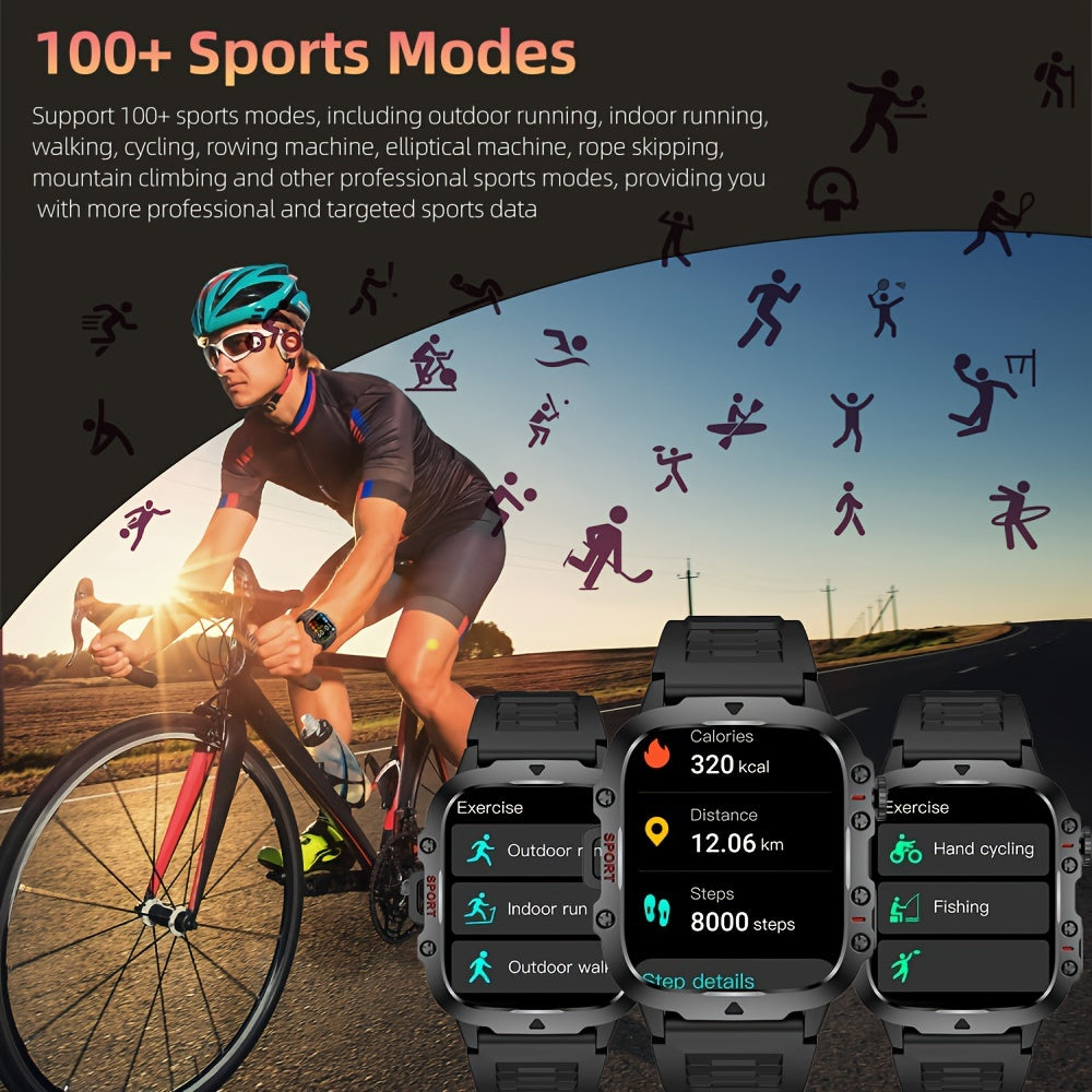 Tactical Outdoor Smartwatch (Answer/Make Calls), 1.96'' Smart Watch For IPhone And Android Phones, Waterproof Sport Watch With Lock-Screen/100+Sport Modes/Long Battery Life/Weather Forecast/Alarm Clock/ Good Gifts For Sportsm