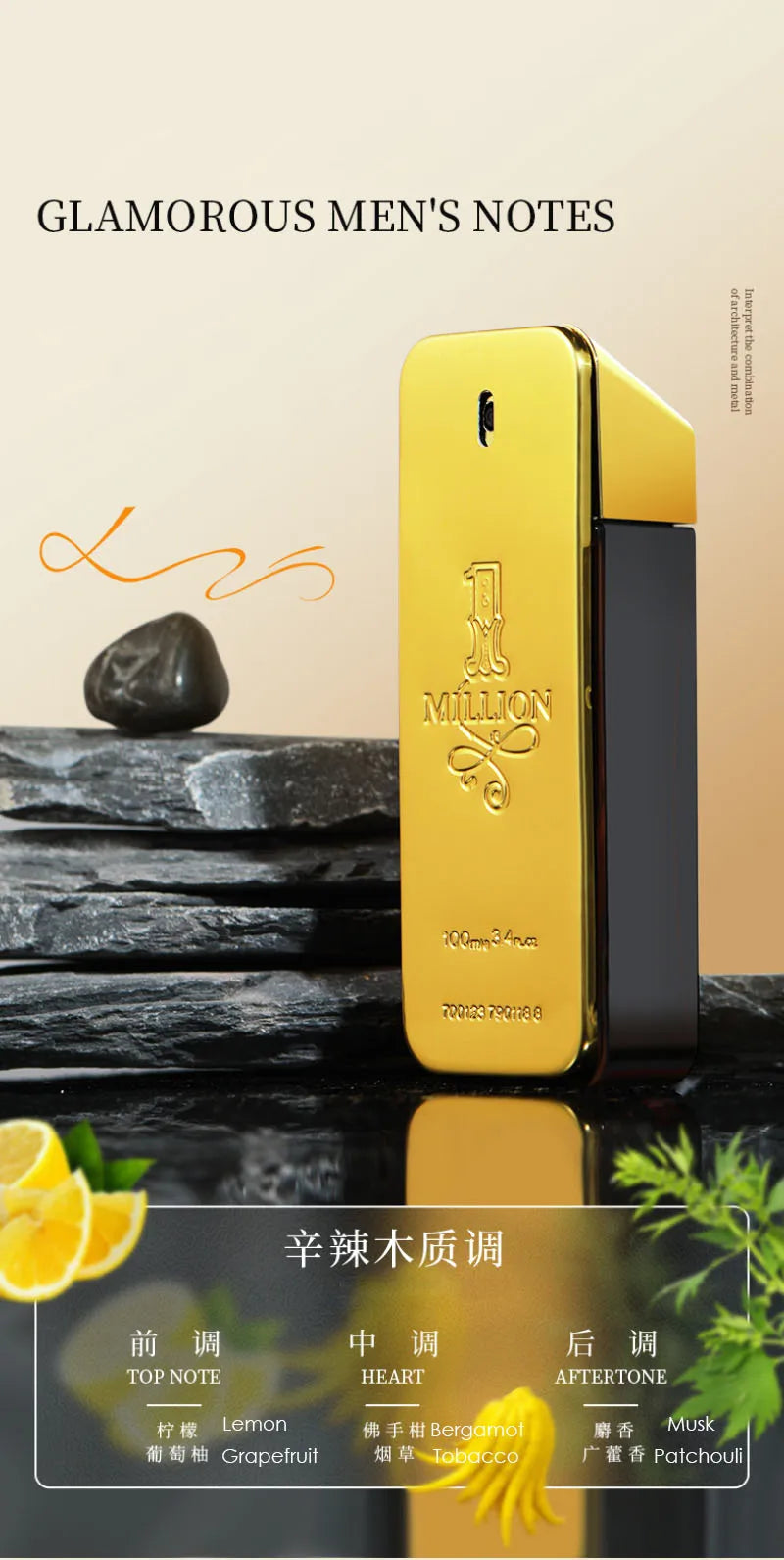 Top Seller Luxury Gold One Million 100ml Eau De Parfum Spray for Men Fresh Romantic Spicy Woody Notes Long Lasting Homme Perfume
