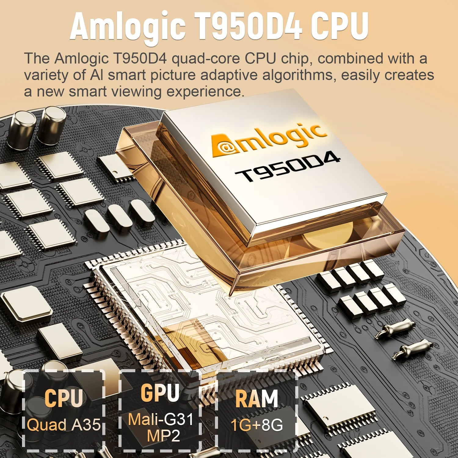 Seamlessly cast from your phone,tablet,or laptopAmlogic T950D4 CPU