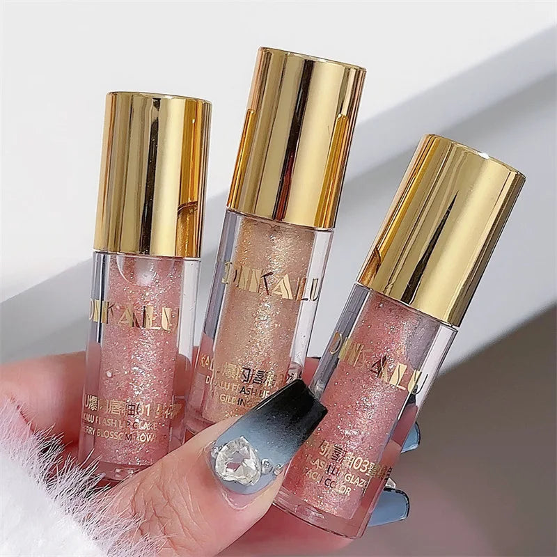 Waterproof Diamond Shimmer Glitter Lip Gloss 5 Colors Sparkling Glitter Liquid Lipstick Diamond Pearl Lip Gloss Sexy Lip Make Up